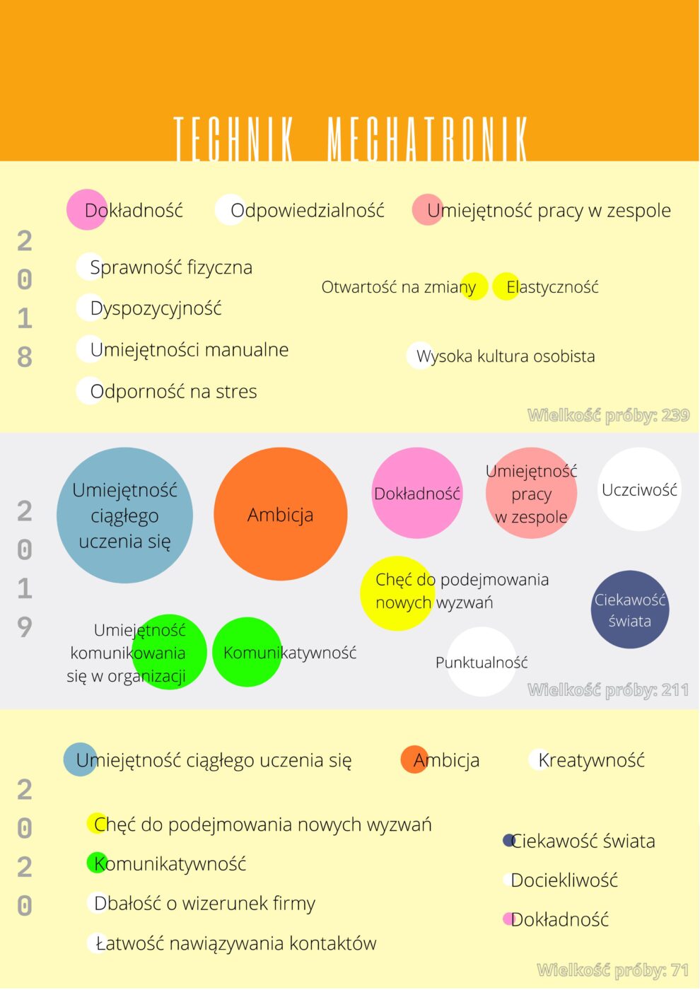 NAJPOPULARNIEJSZE KOMPETENCJE SPOŁECZNE W LATACH 2018-2020 WYKAZYWANE PRZEZ KANDYDATÓW KSZTAŁCĄCYCH SIĘ W ZAWODZIE TECHNIK MECHATRONIK